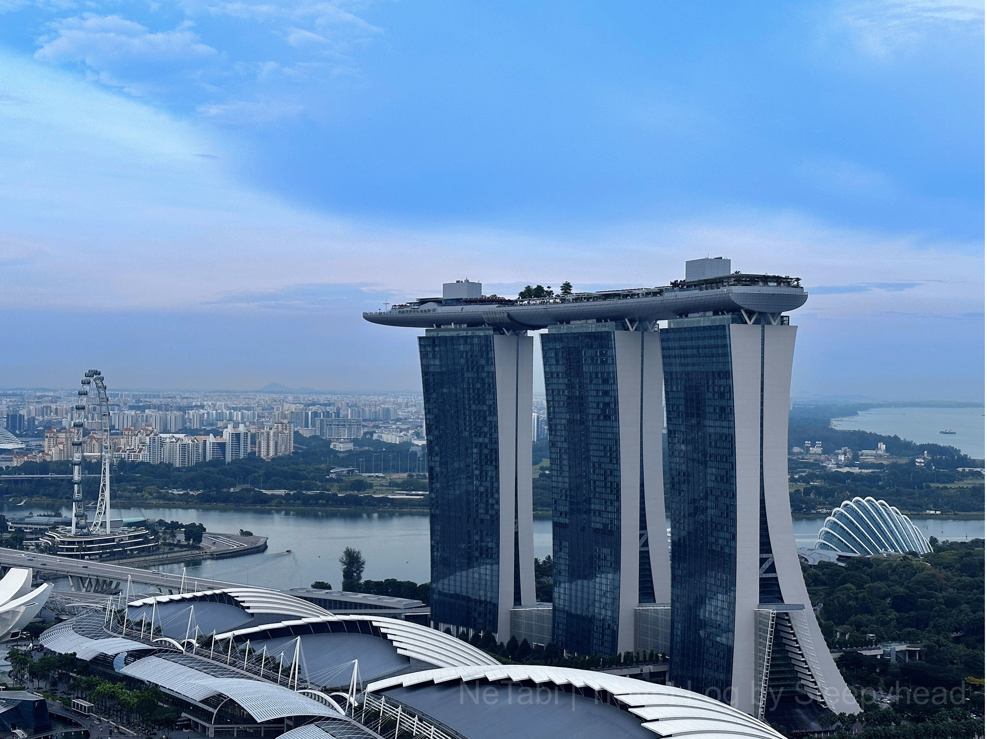 マリーナベイ・サンズは、3棟のホテルが屋上のスカイパークでつながる“船型デザイン” 。